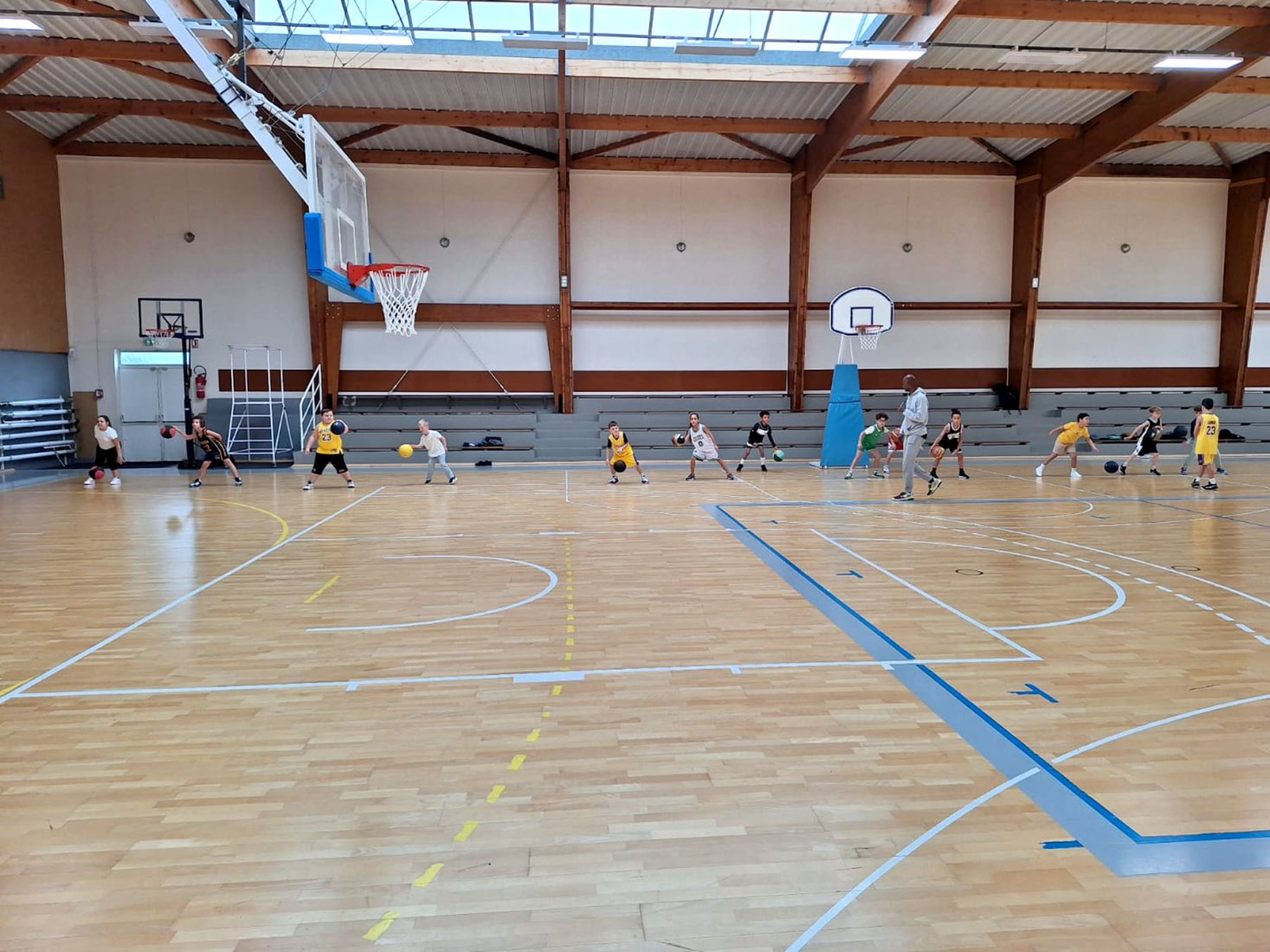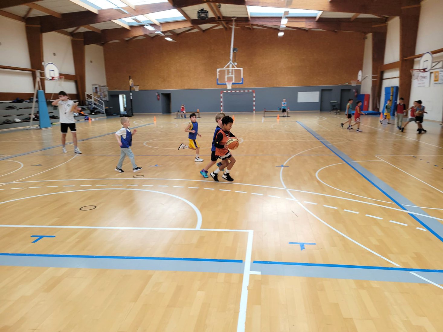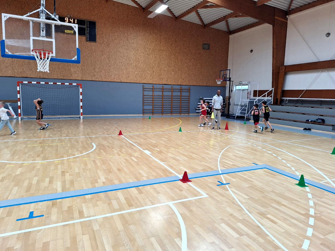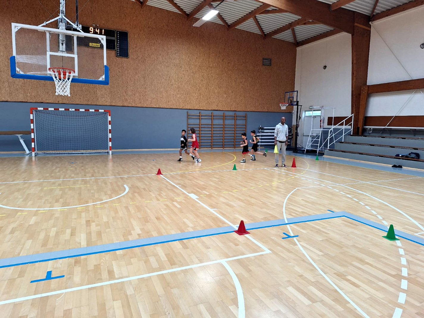 Au programme : fondamentaux, matchs, jeux en salle encadrés par Kamal et Mathis, avec l’aide de Nolan, licencié U11. Le midi, place aux jeux calmes animés par Mathis 😌