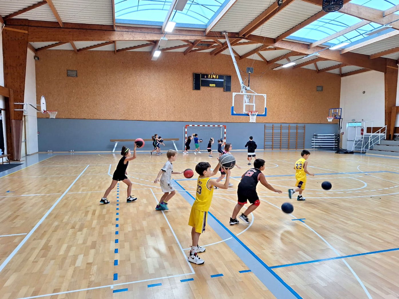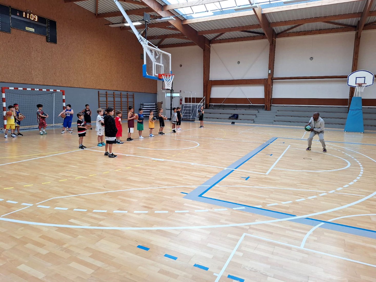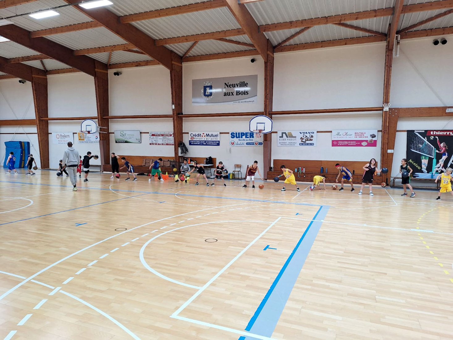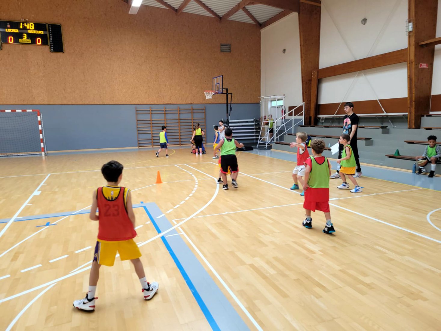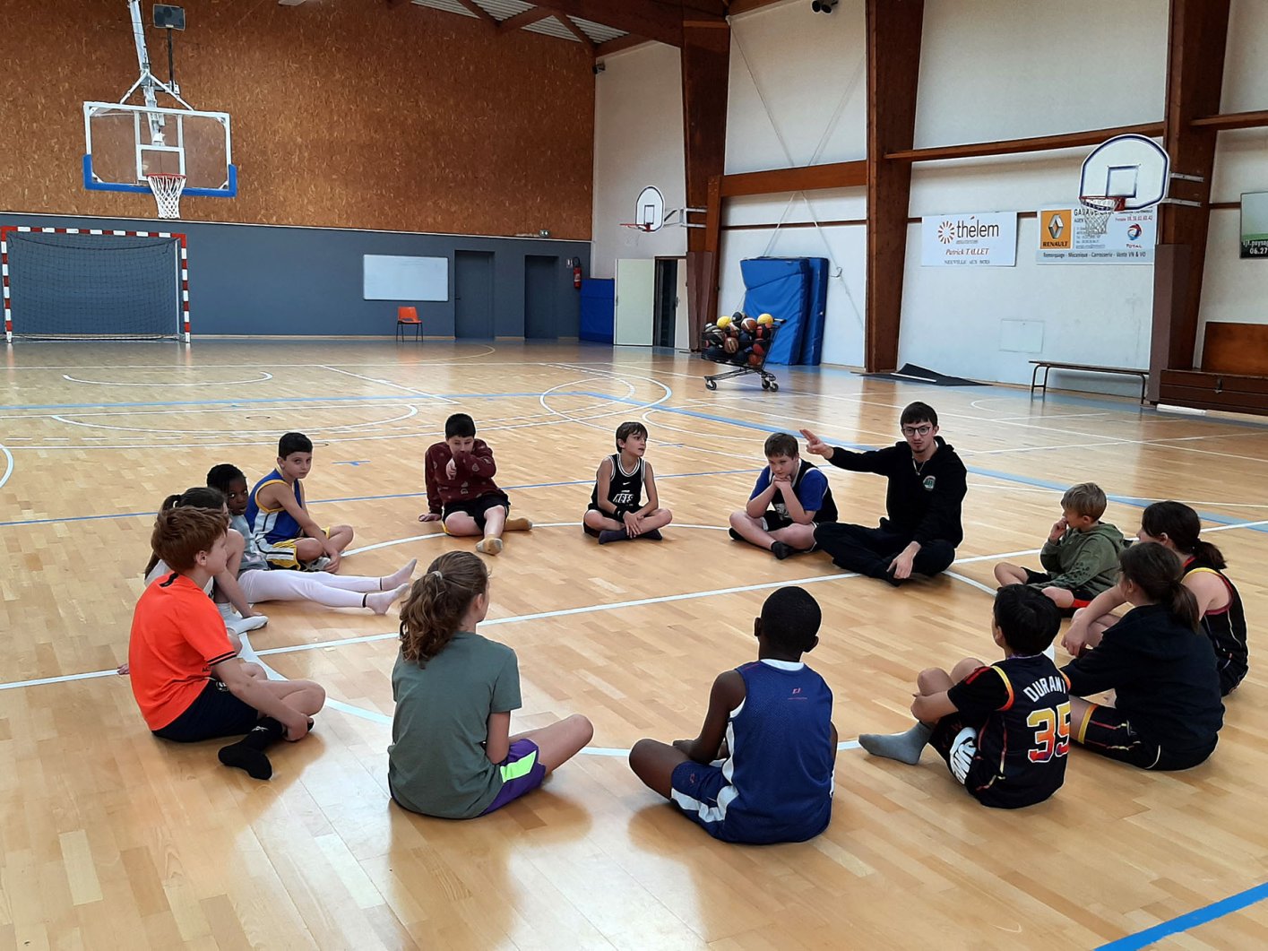 Au programme : fondamentaux, matchs, jeux en salle encadrés par Kamal et Mathis, avec l’aide de Nolan, licencié U11. Le midi, place aux jeux calmes animés par Mathis 😌