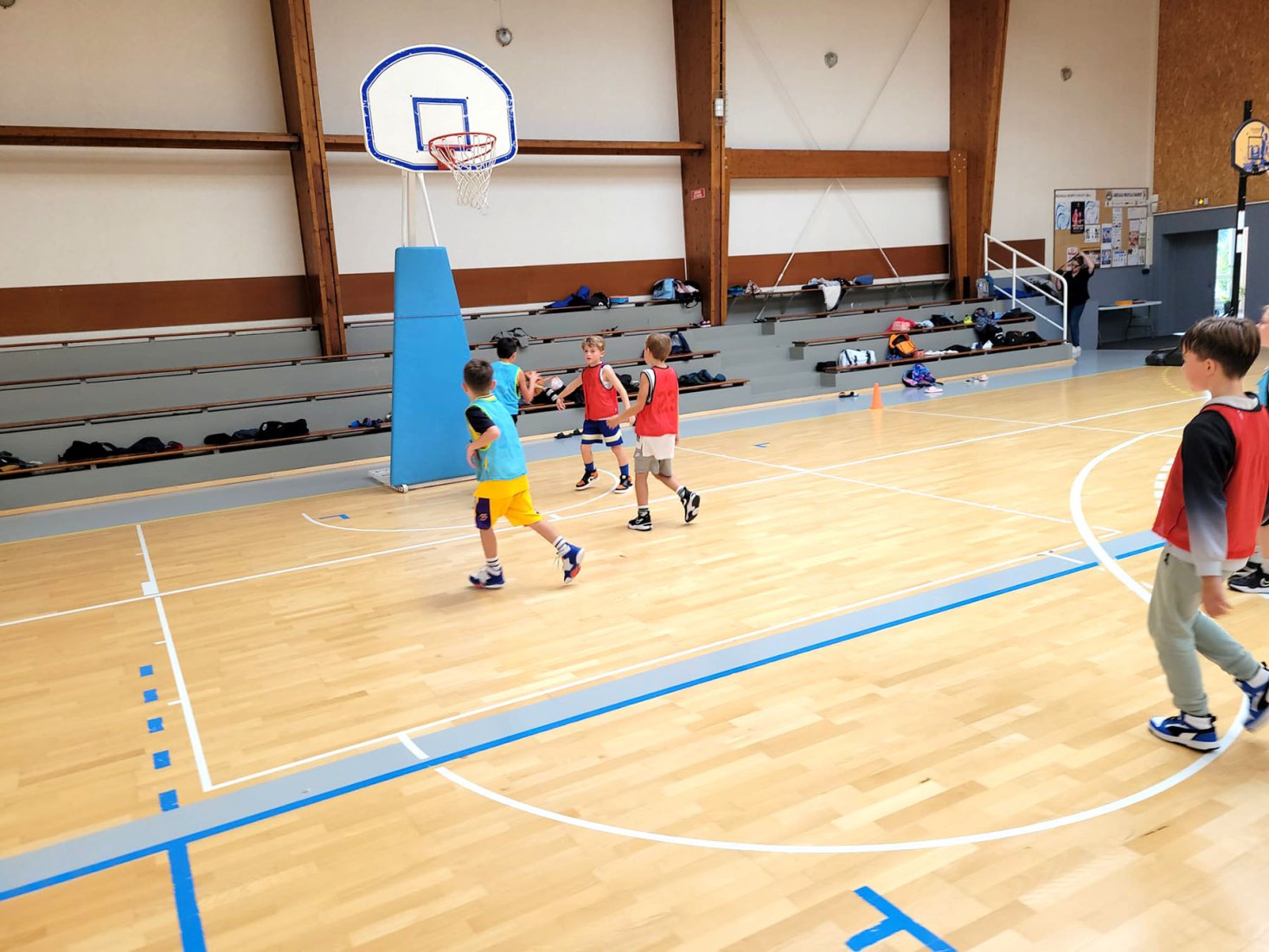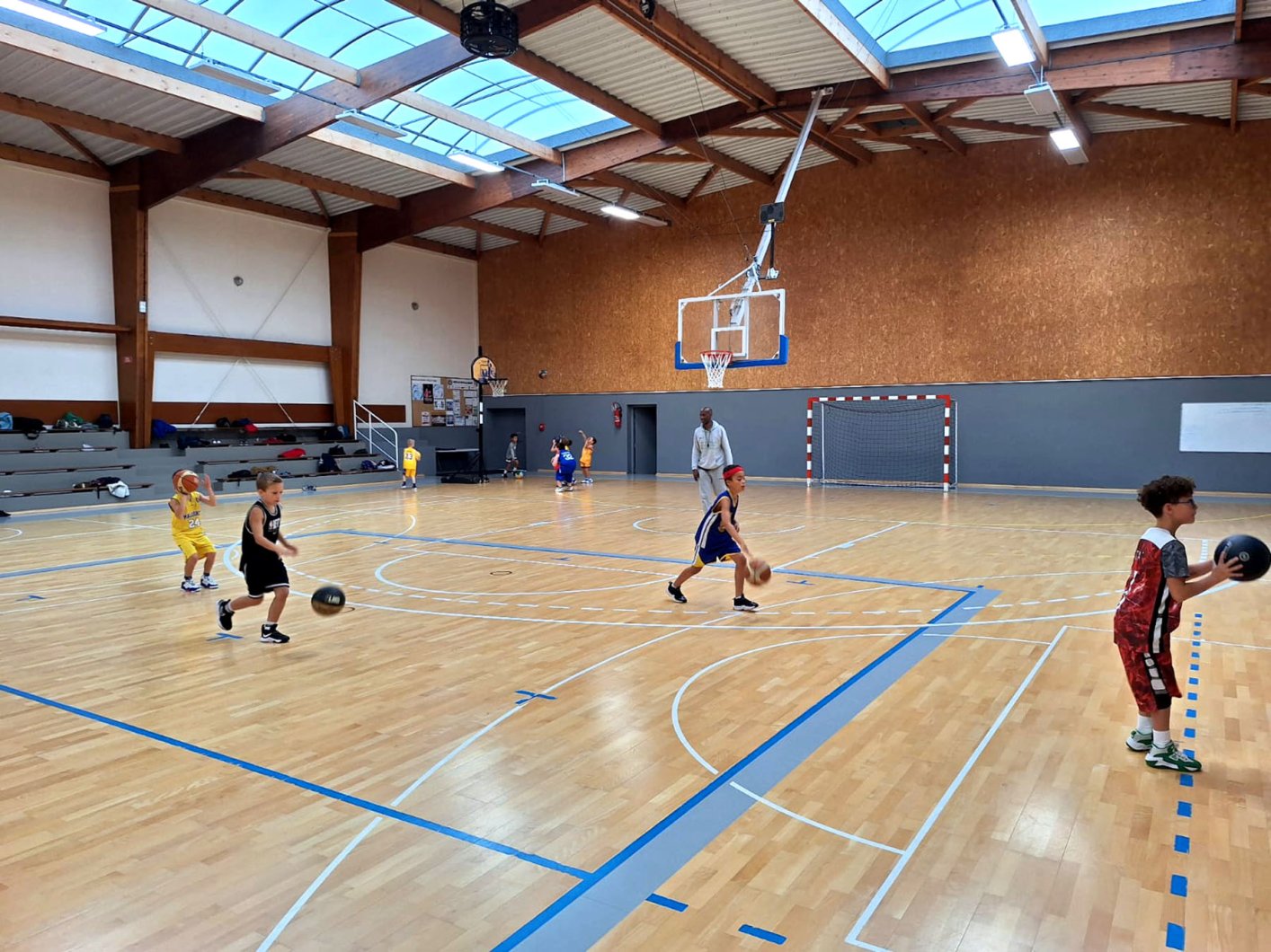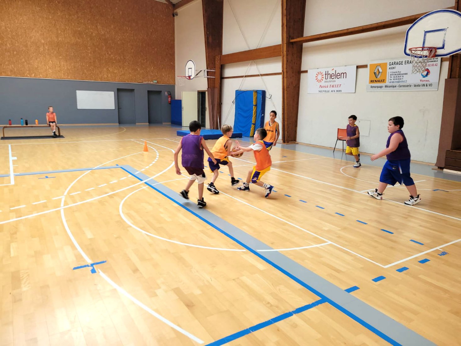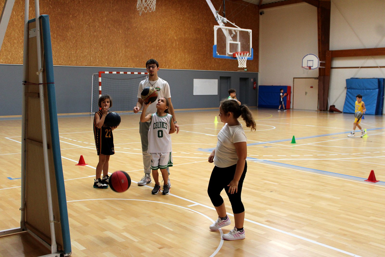 Au programme : fondamentaux, matchs, jeux en salle encadrés par Kamal et Mathis, avec l’aide de Nolan, licencié U11. Le midi, place aux jeux calmes animés par Mathis 😌