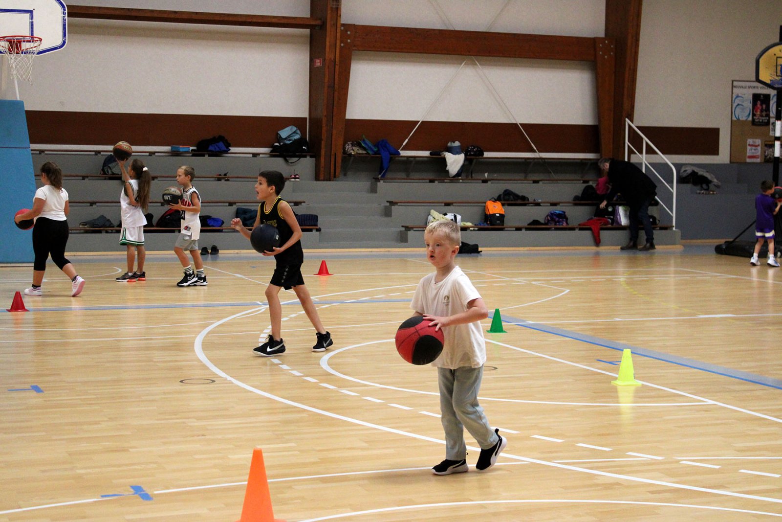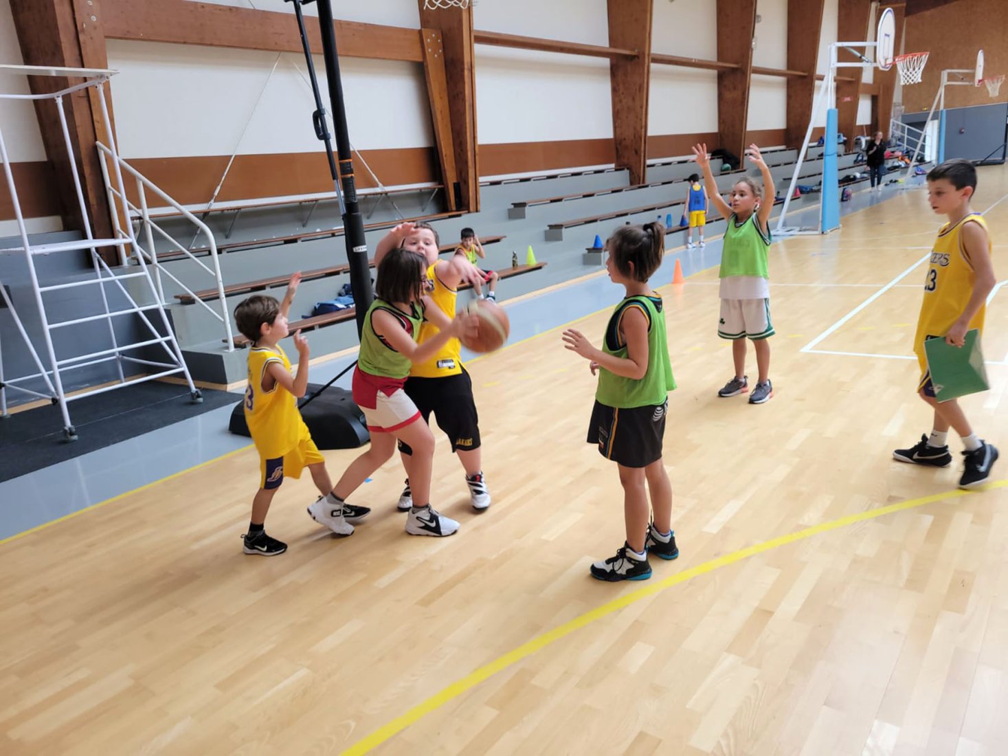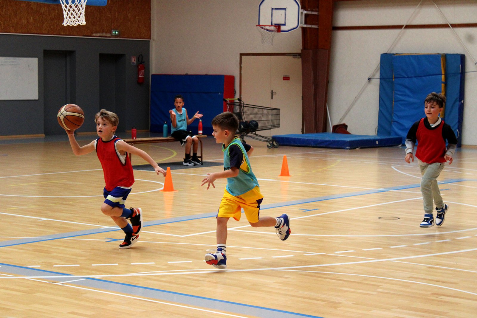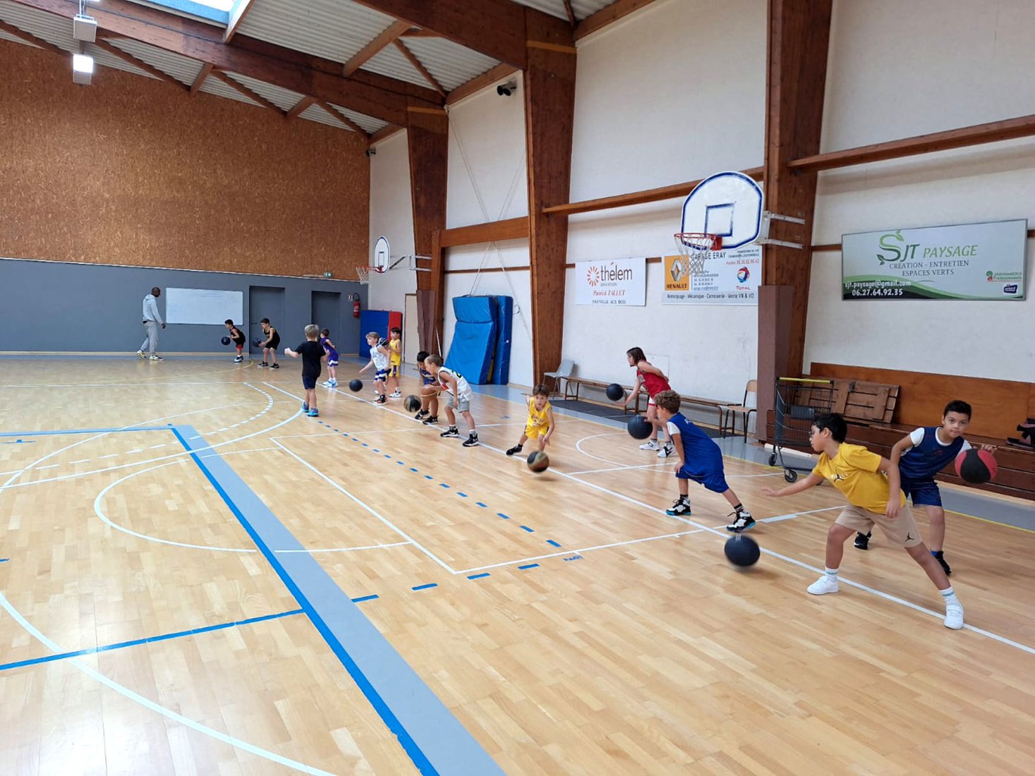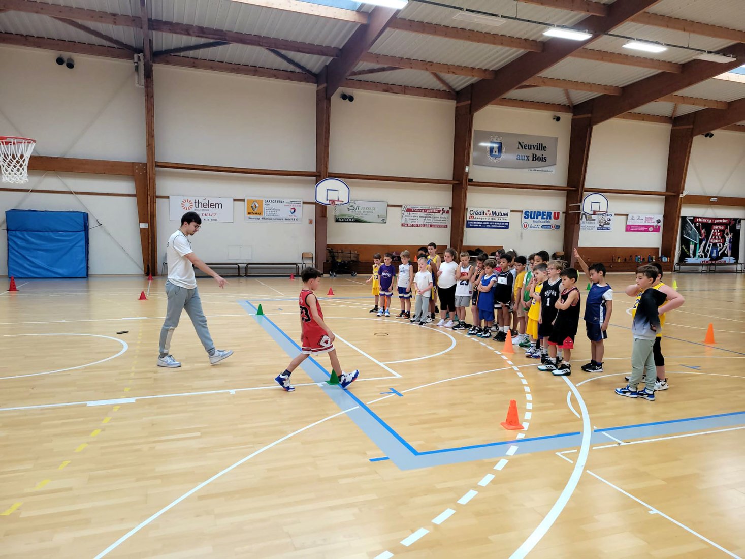Au programme : fondamentaux, matchs, jeux en salle encadrés par Kamal et Mathis, avec l’aide de Nolan, licencié U11. Le midi, place aux jeux calmes animés par Mathis 😌