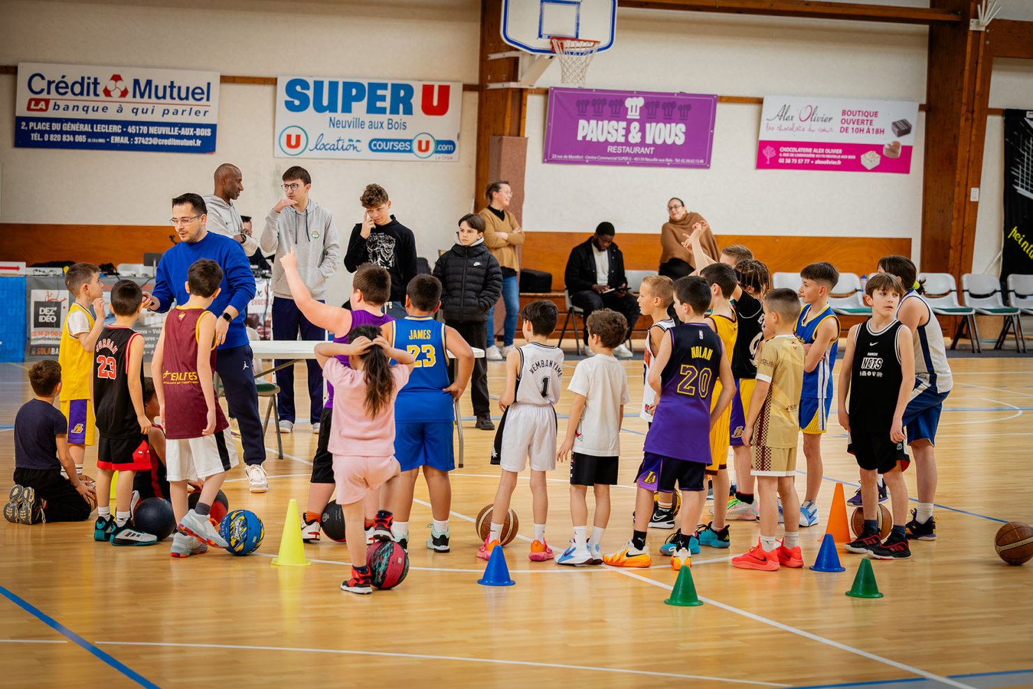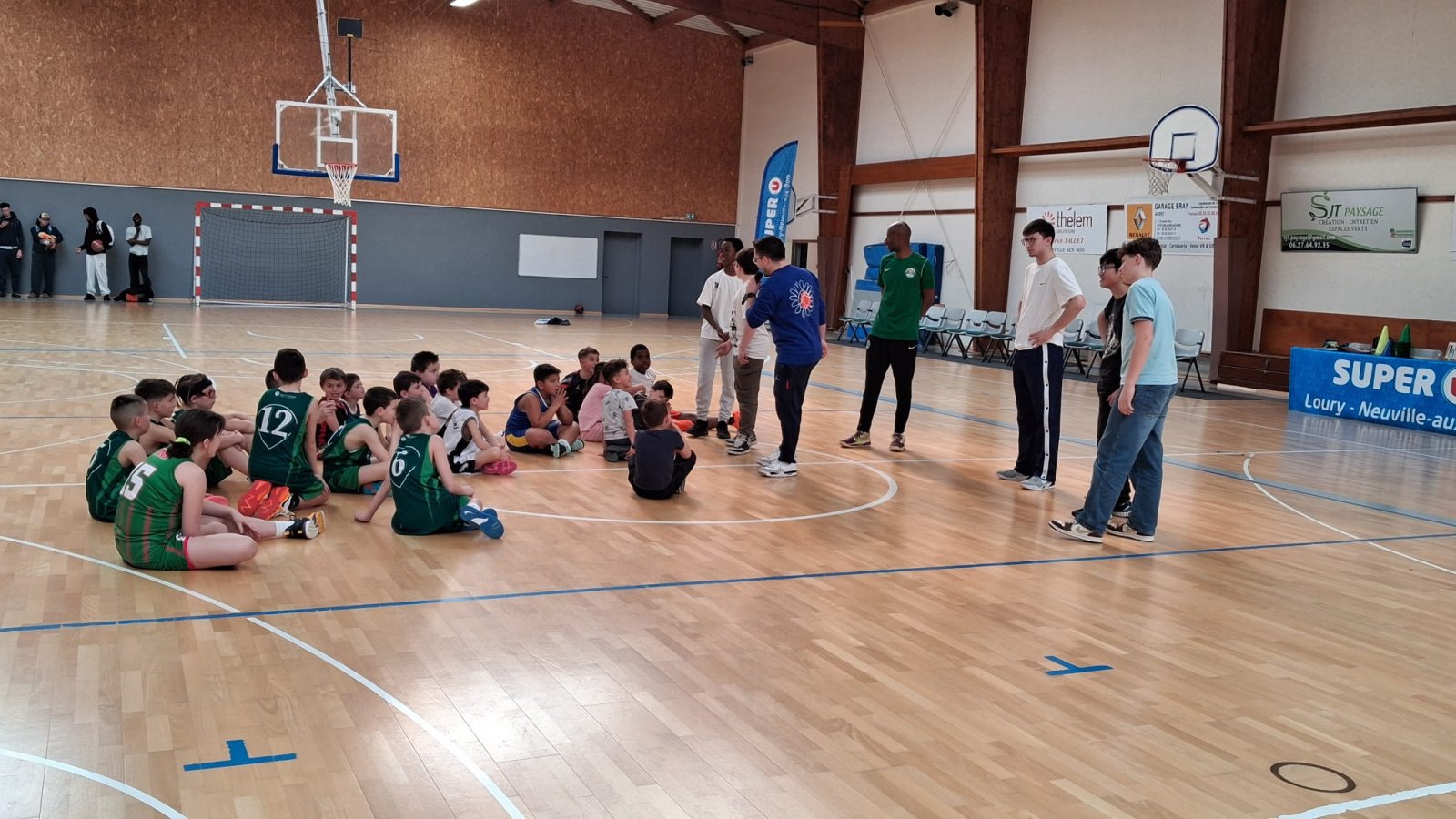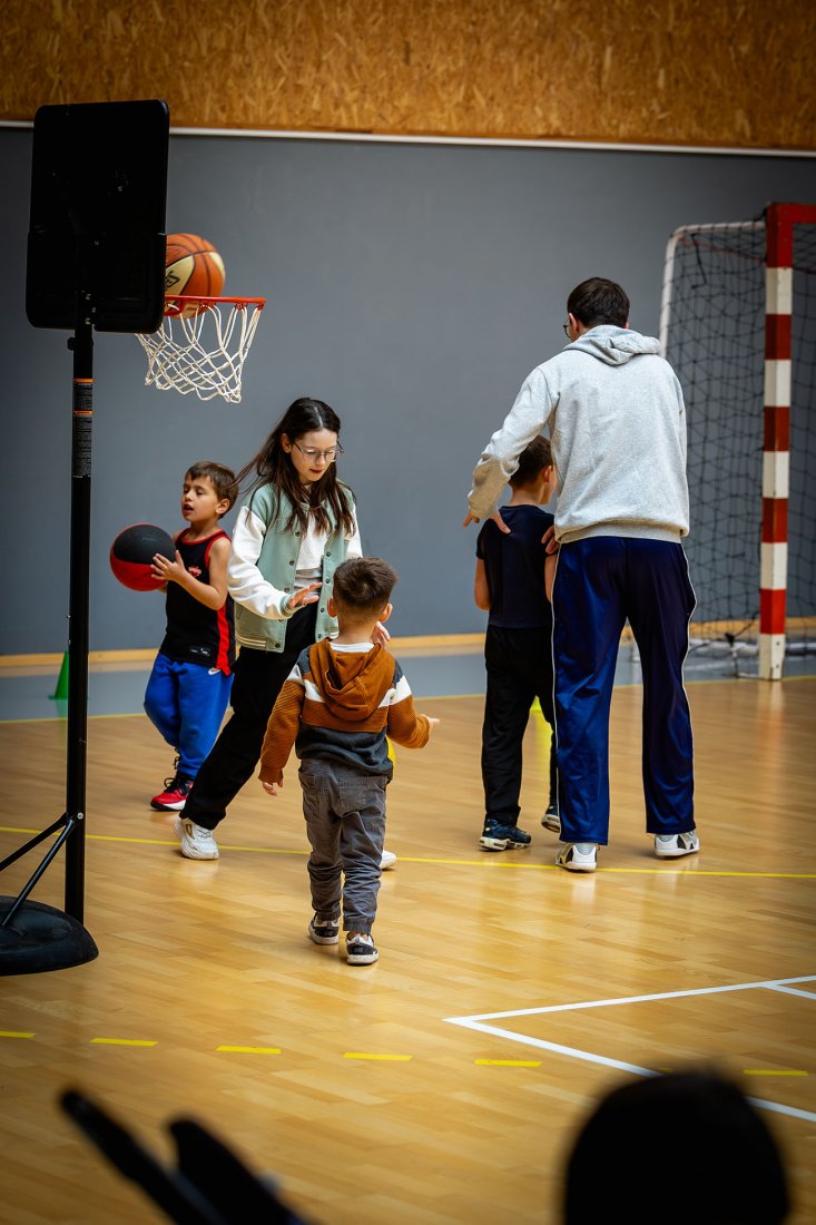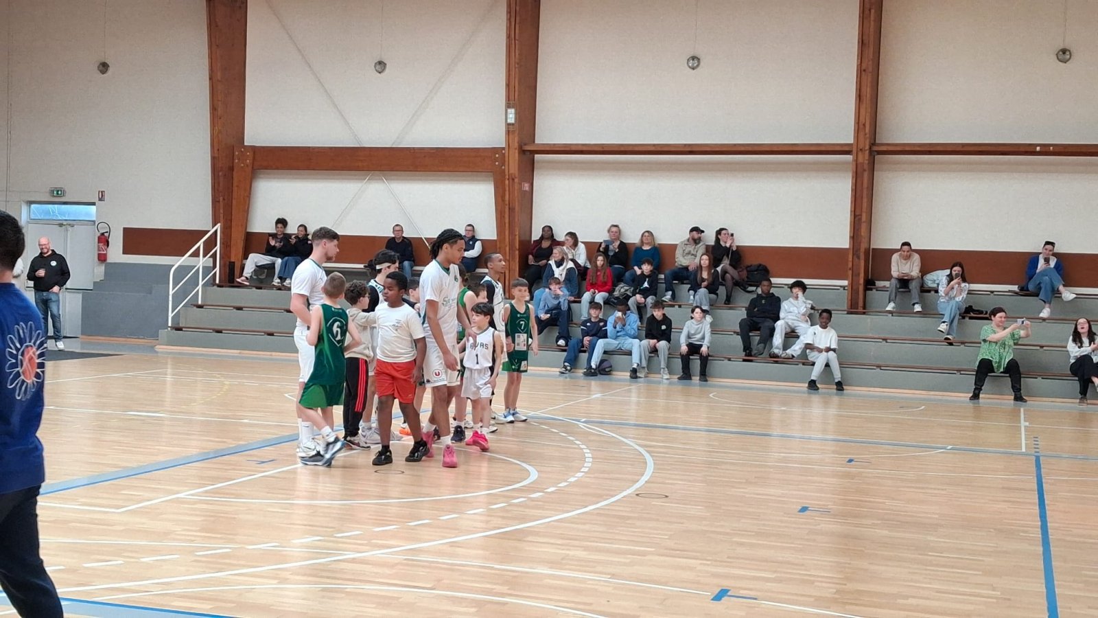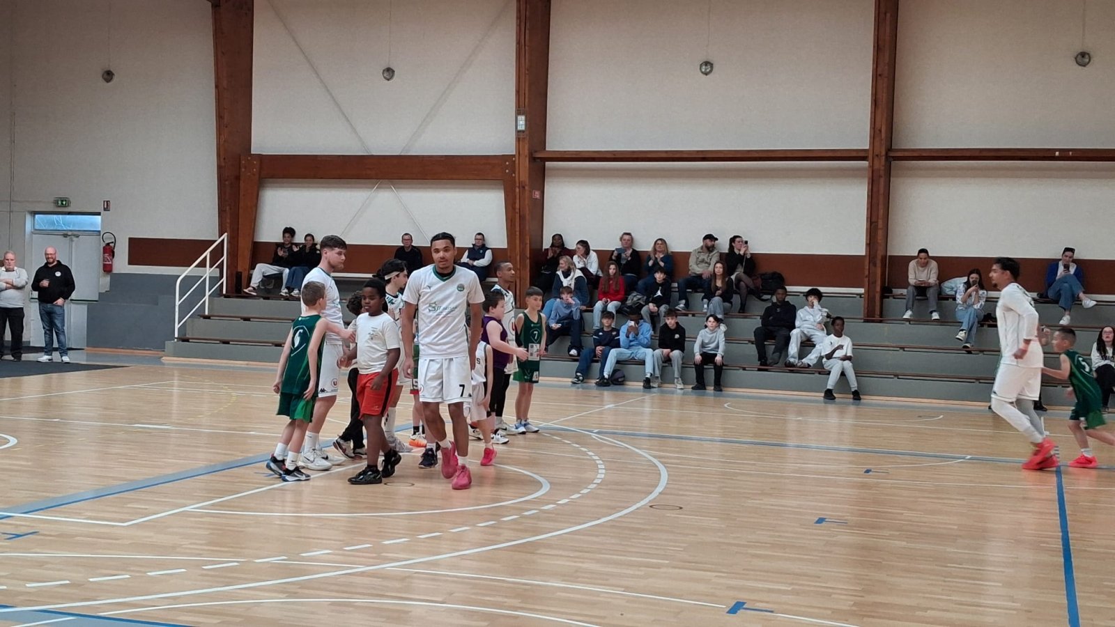 Les enfants ont pu ensuite participer à des ateliers basket mis en place par Kamal et Mathis. Un repas parents/enfants s'en est suivi pour ceux qui sont restés sur place. Puis, place aux matchs avec nos Minibasketteurs.