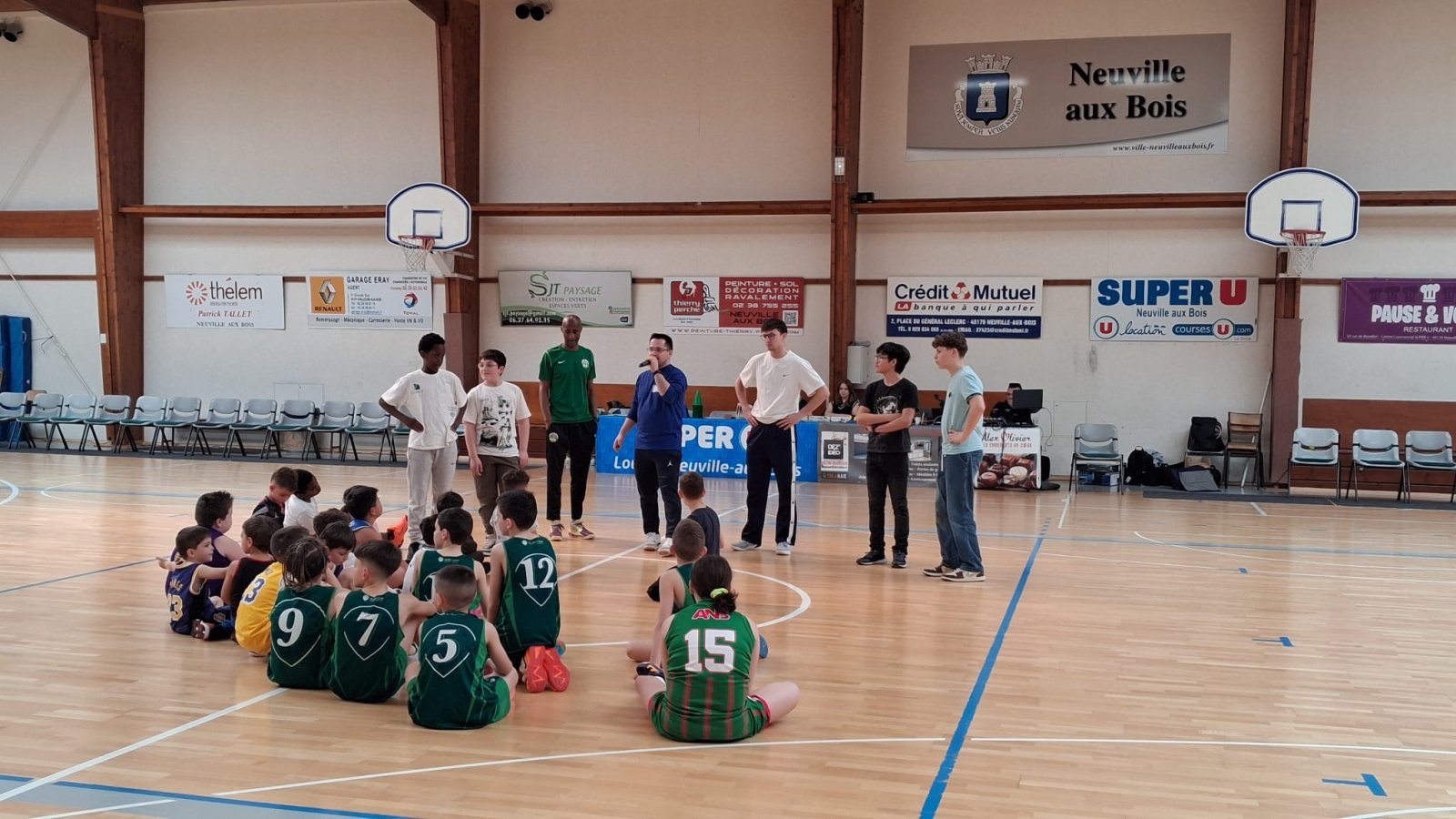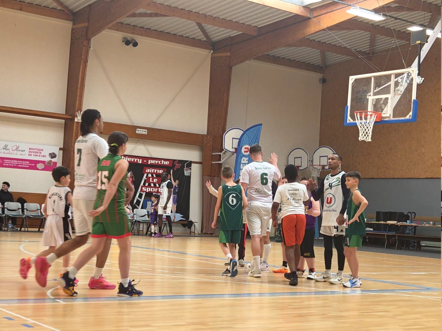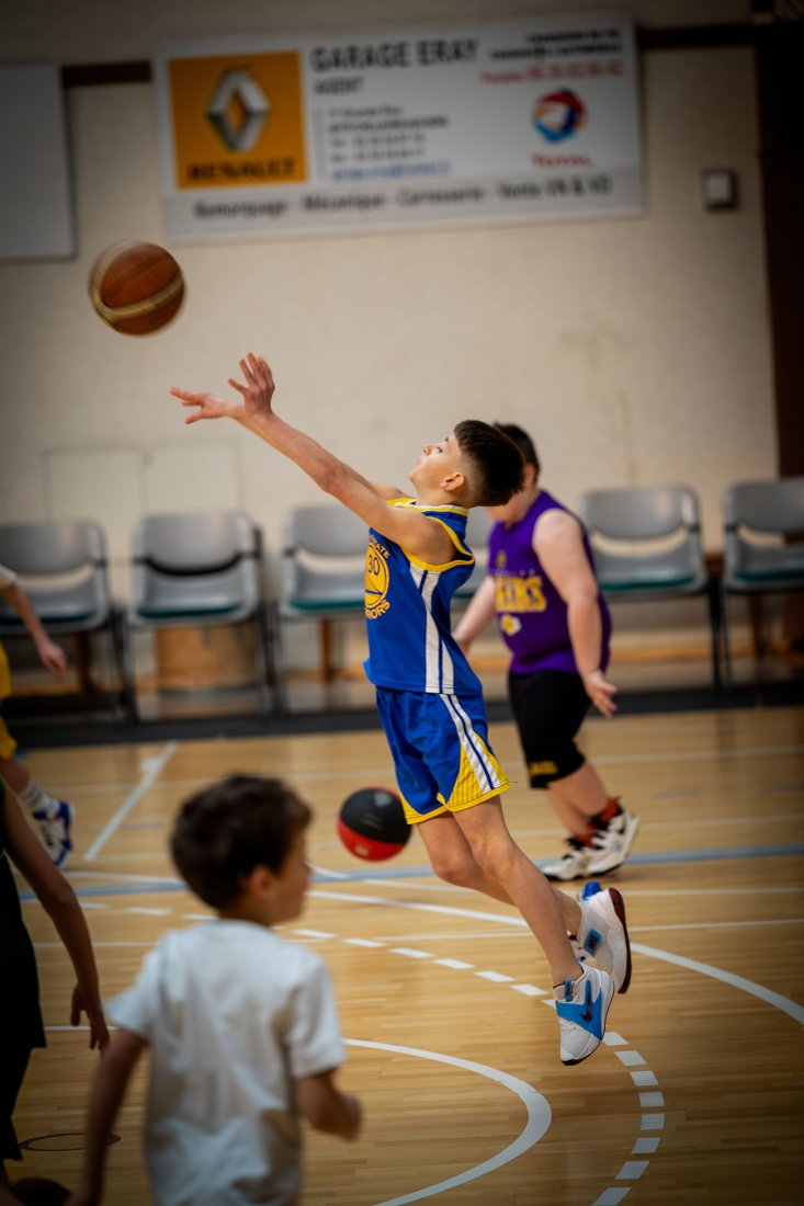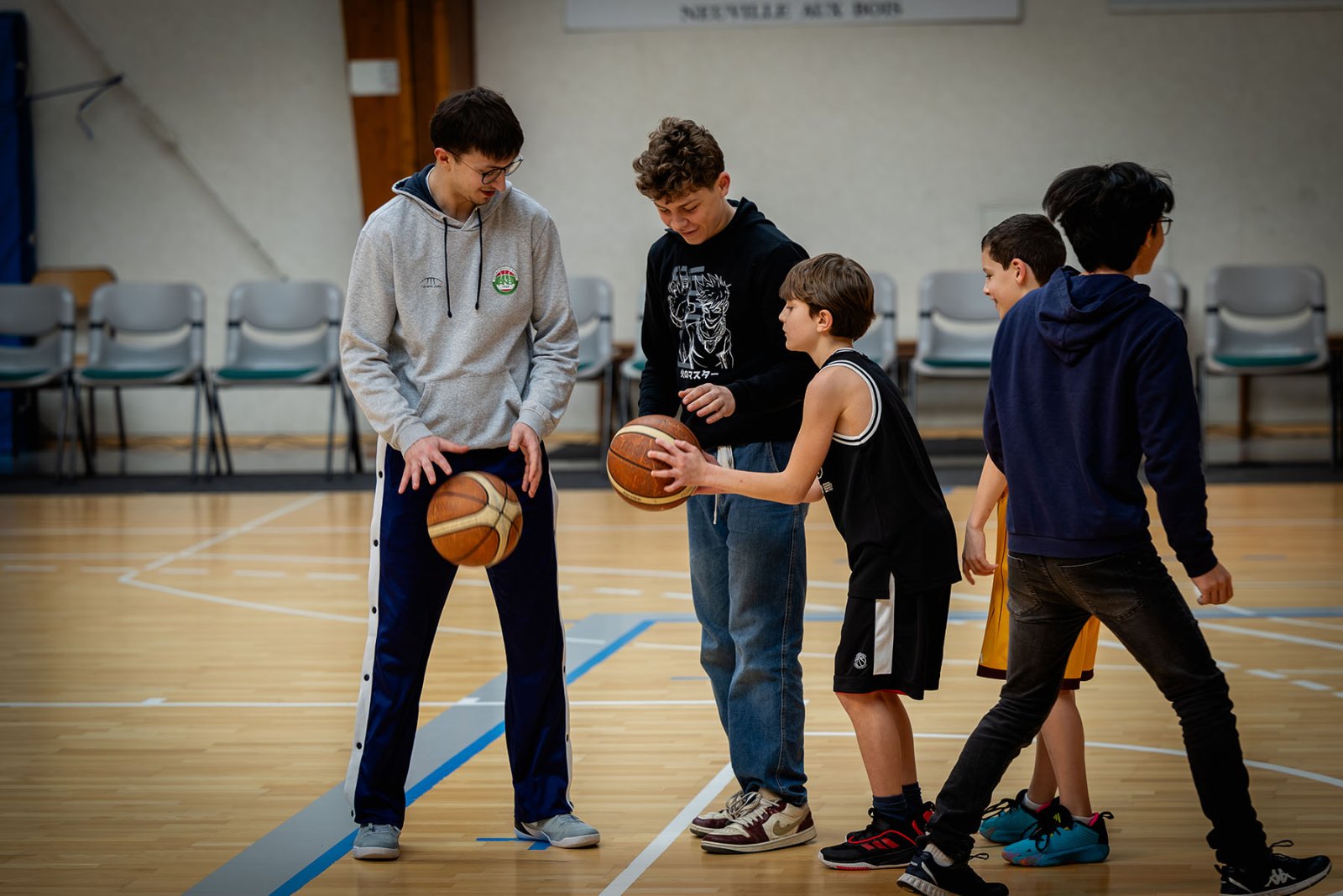 Les enfants ont pu ensuite participer à des ateliers basket mis en place par Kamal et Mathis. Un repas parents/enfants s'en est suivi pour ceux qui sont restés sur place. Puis, place aux matchs avec nos Minibasketteurs.