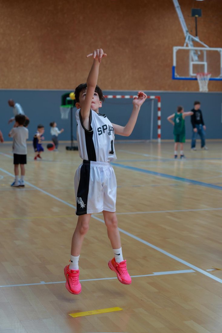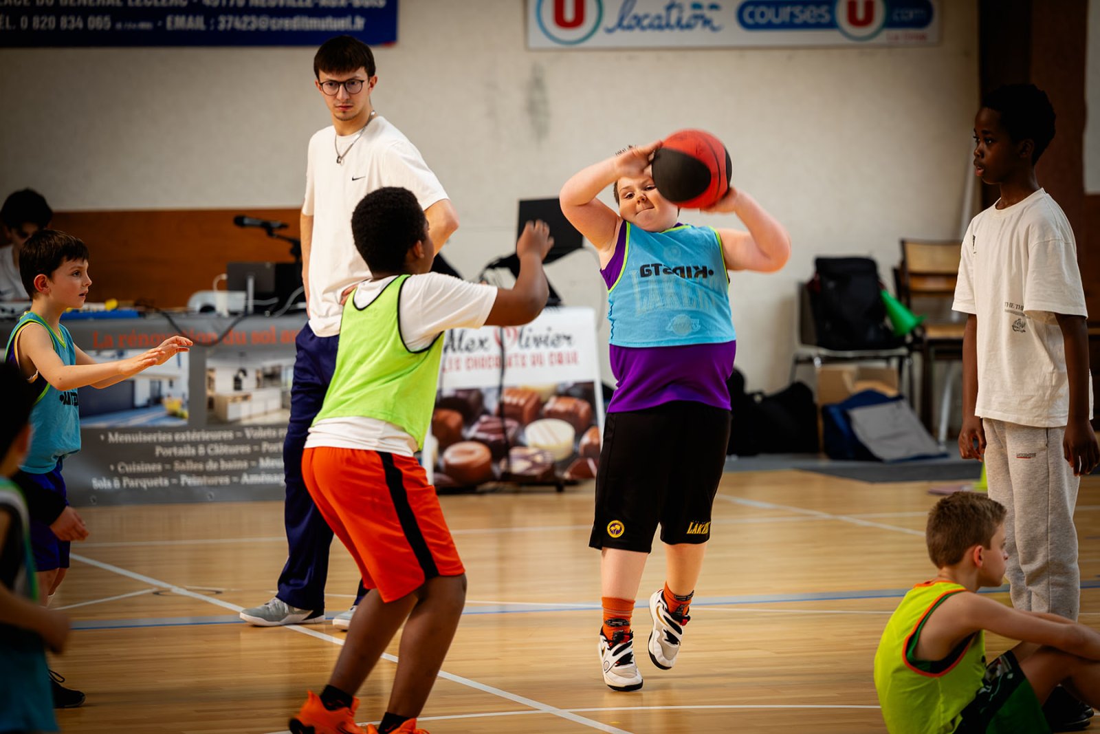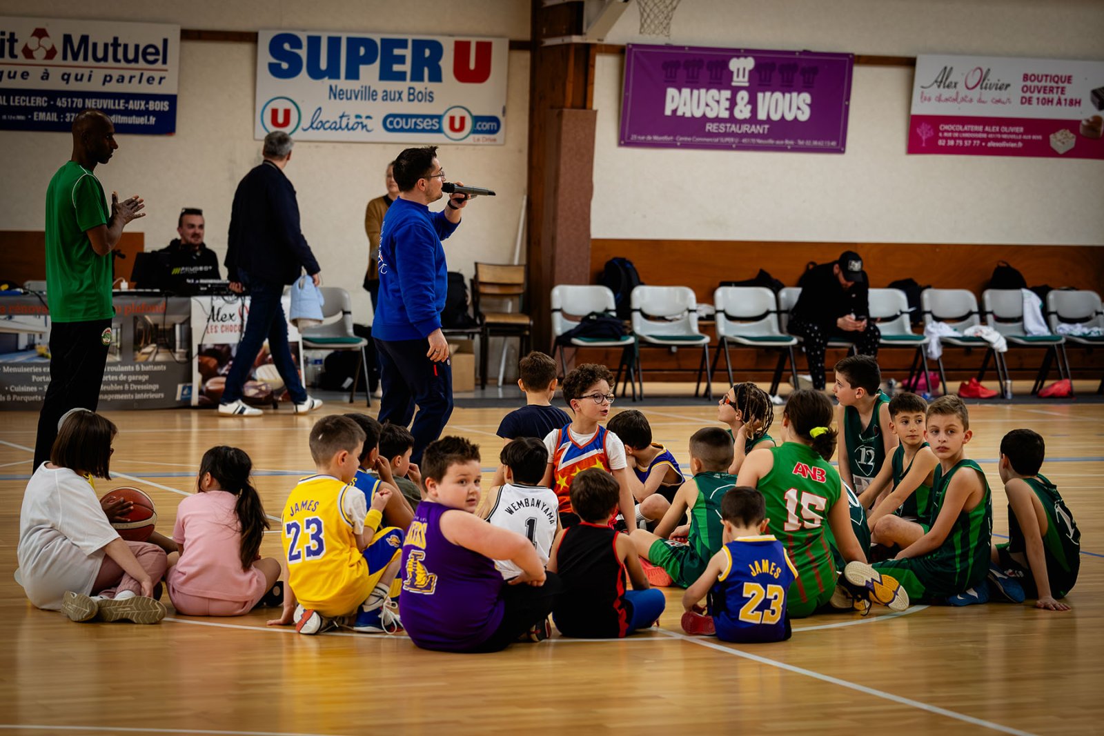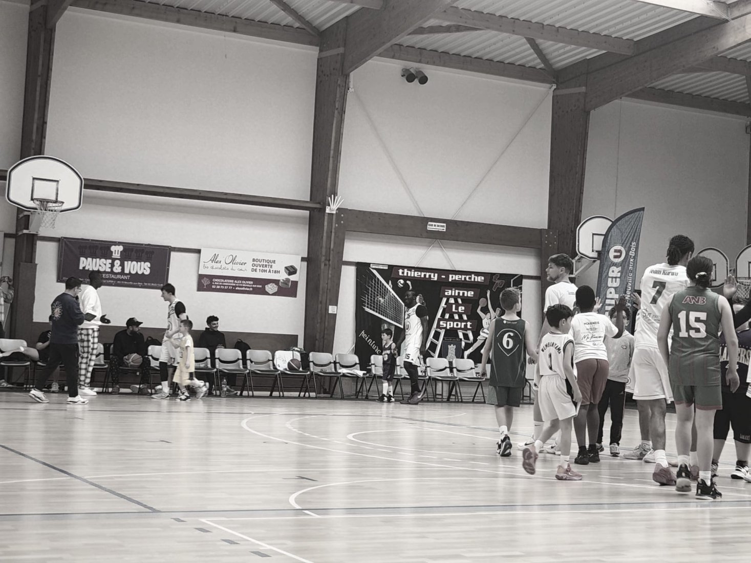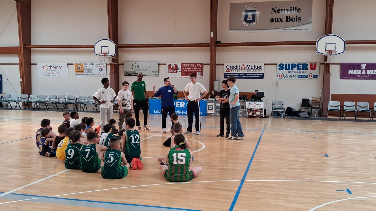 Les enfants ont pu ensuite participer à des ateliers basket mis en place par Kamal et Mathis. Un repas parents/enfants s'en est suivi pour ceux qui sont restés sur place. Puis, place aux matchs avec nos Minibasketteurs.