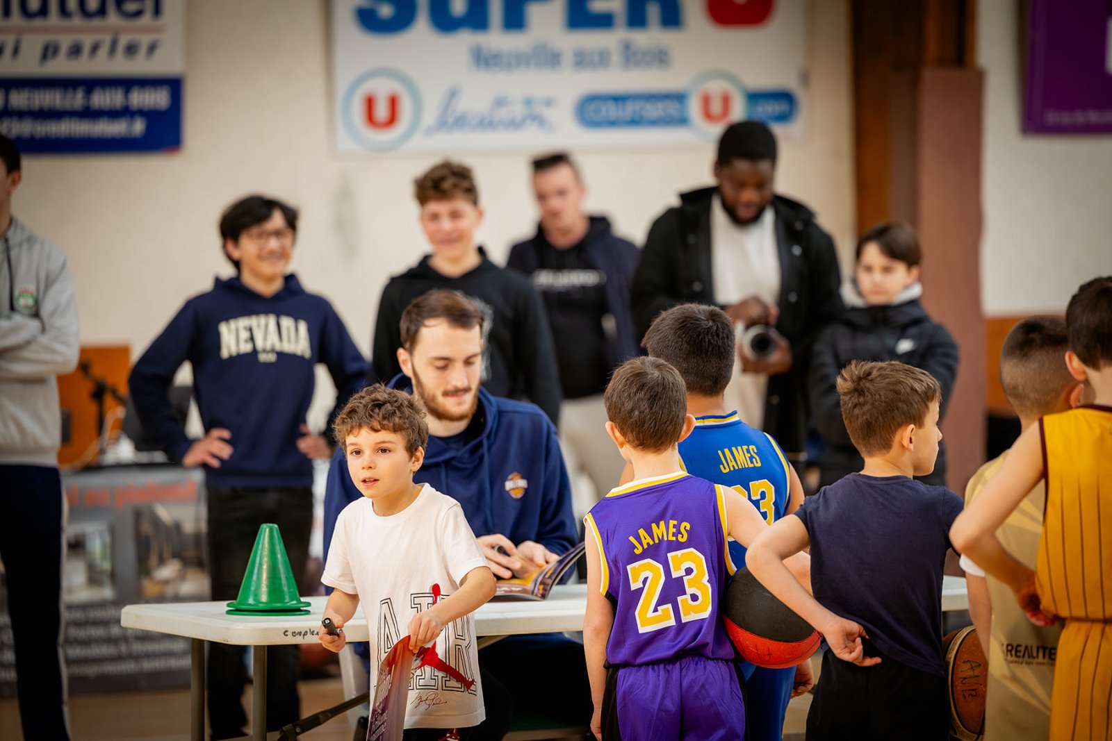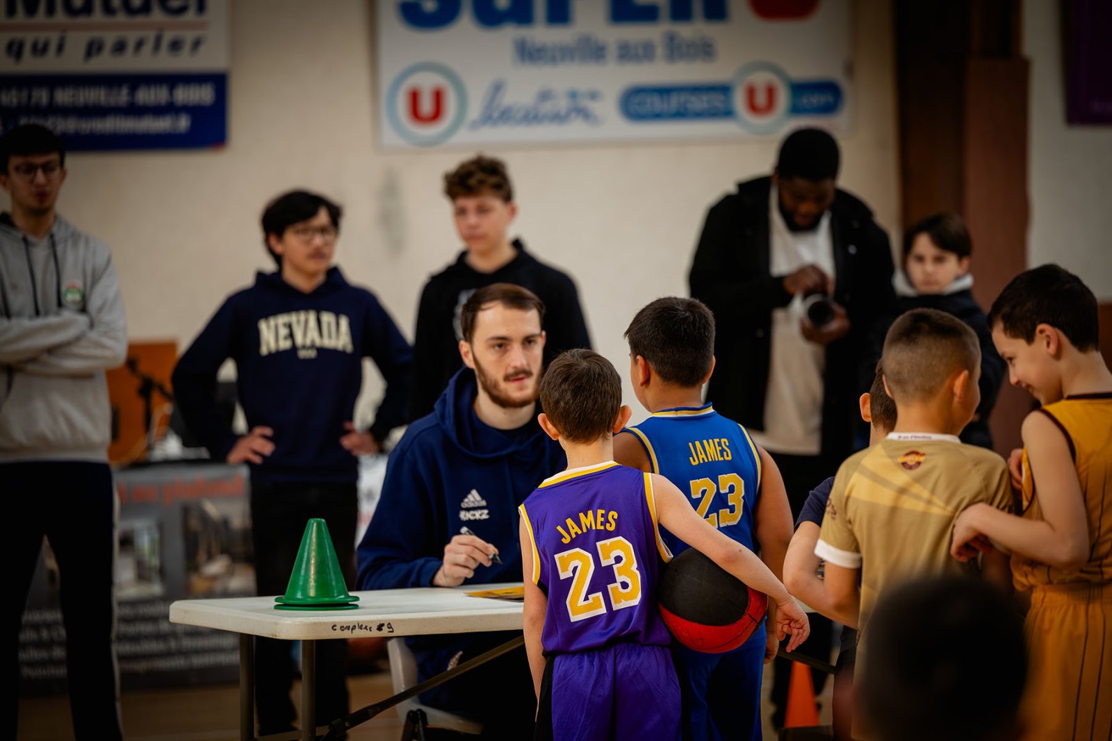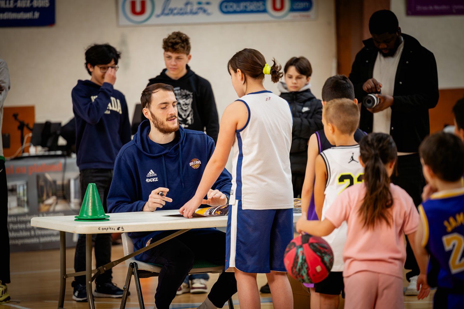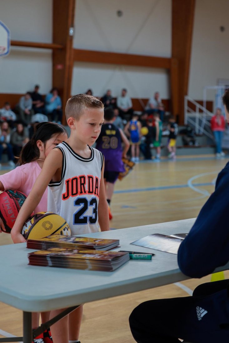 Une belle SURPRISE pour nos Minibasketteurs présents le matin : Lorenzo THIROUARD SAMSON, un joueur de l’OLB, est venu pour partager ce début de matinée avec les enfants: autographe et shooting photo !